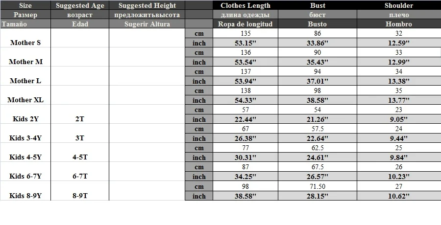 A: For example, size 6T for Kids, size M for Mother,