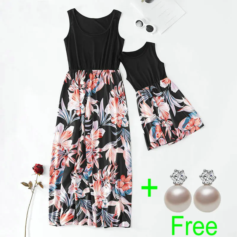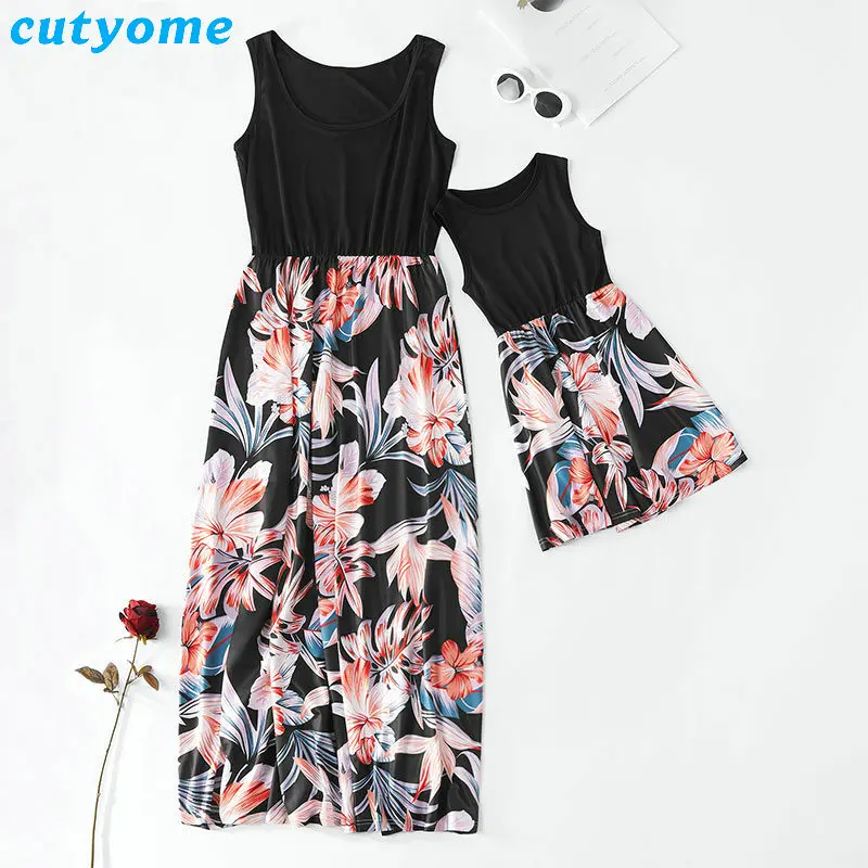 2025 Sleeveless Mom And Daughter Dress Birthday Wedding Family Matching Mommy Girls Me Clothes Beach Holiday Long Dresses 9T