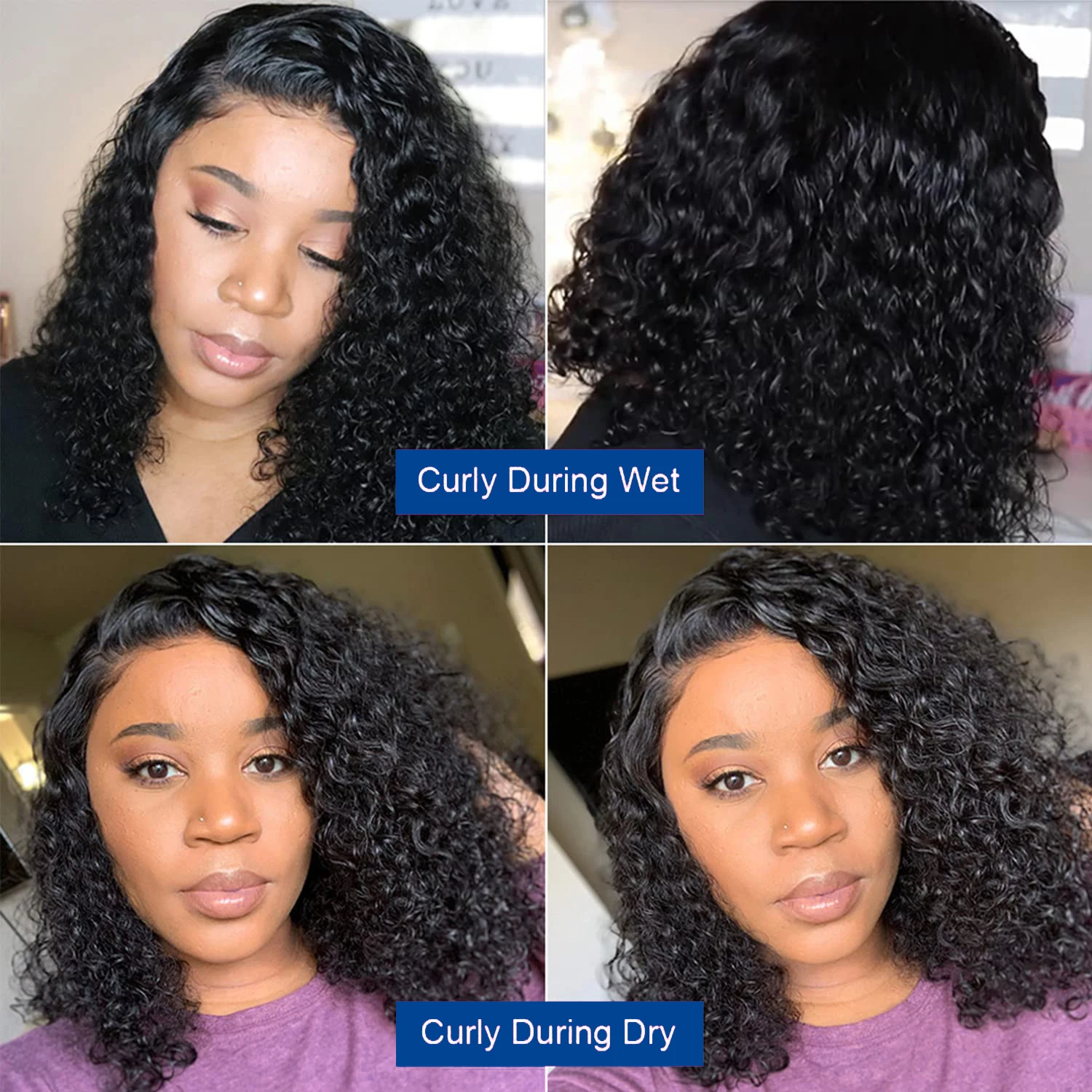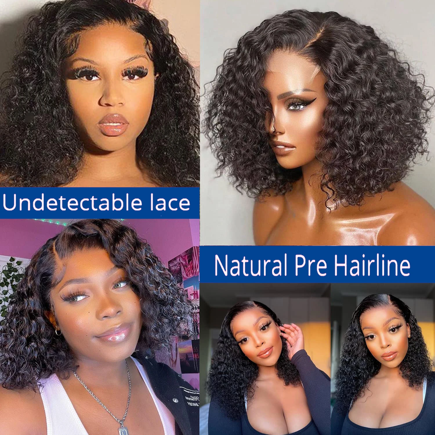 •Hair Texture: Curly/Deep Wave Bob Wig