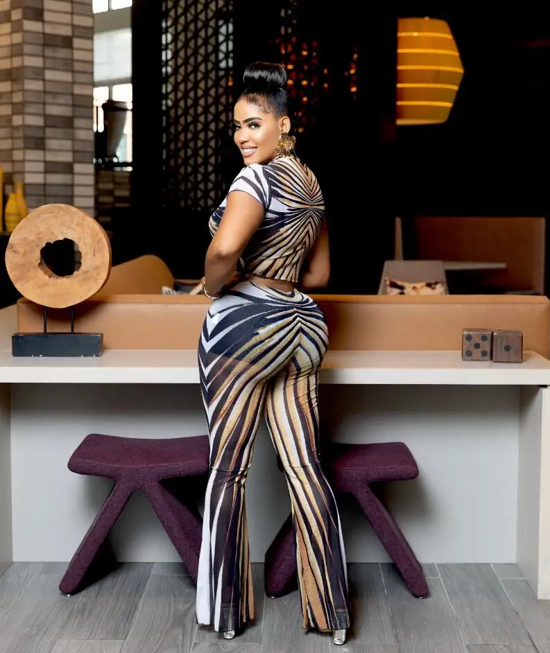 Be the first to review “CM.YAYA 2025 Spring Streetwear Women’s Set Mesh Striped Print Short Sleeve T-shirt +Long Pants Tracksuits Two 2-Piece Set Outfit”