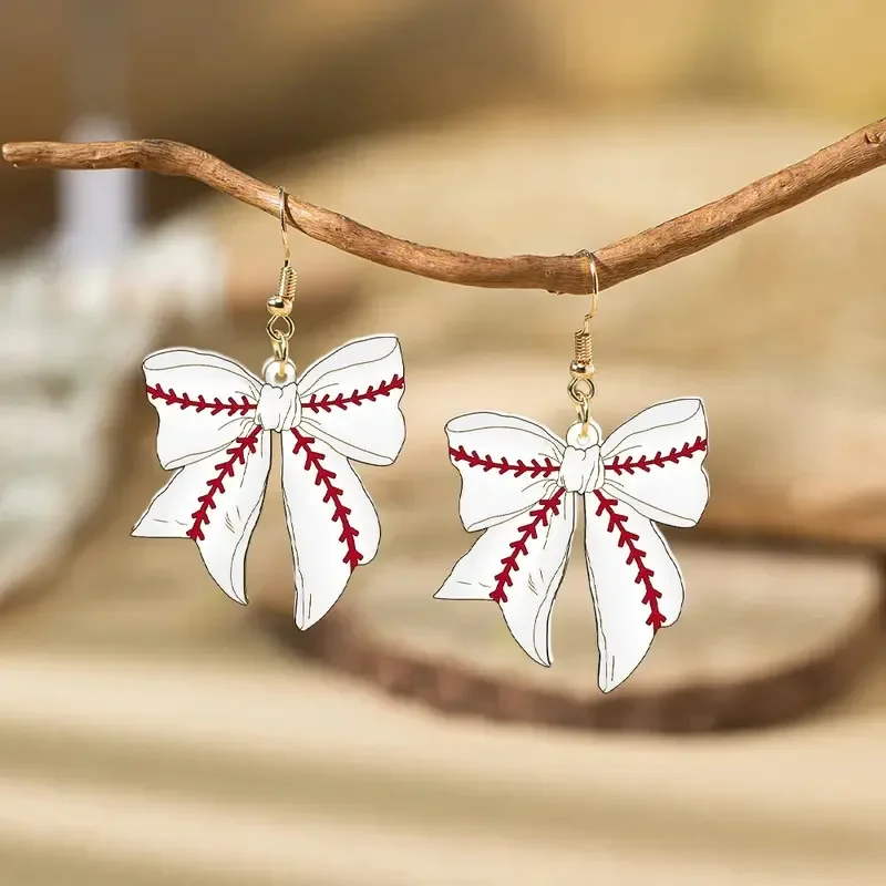Creative 2D Flat Bow Sports Exquisite Simple Earrings Baseball Football Softball Volleyball Earrings Fans Jewelry Accessories