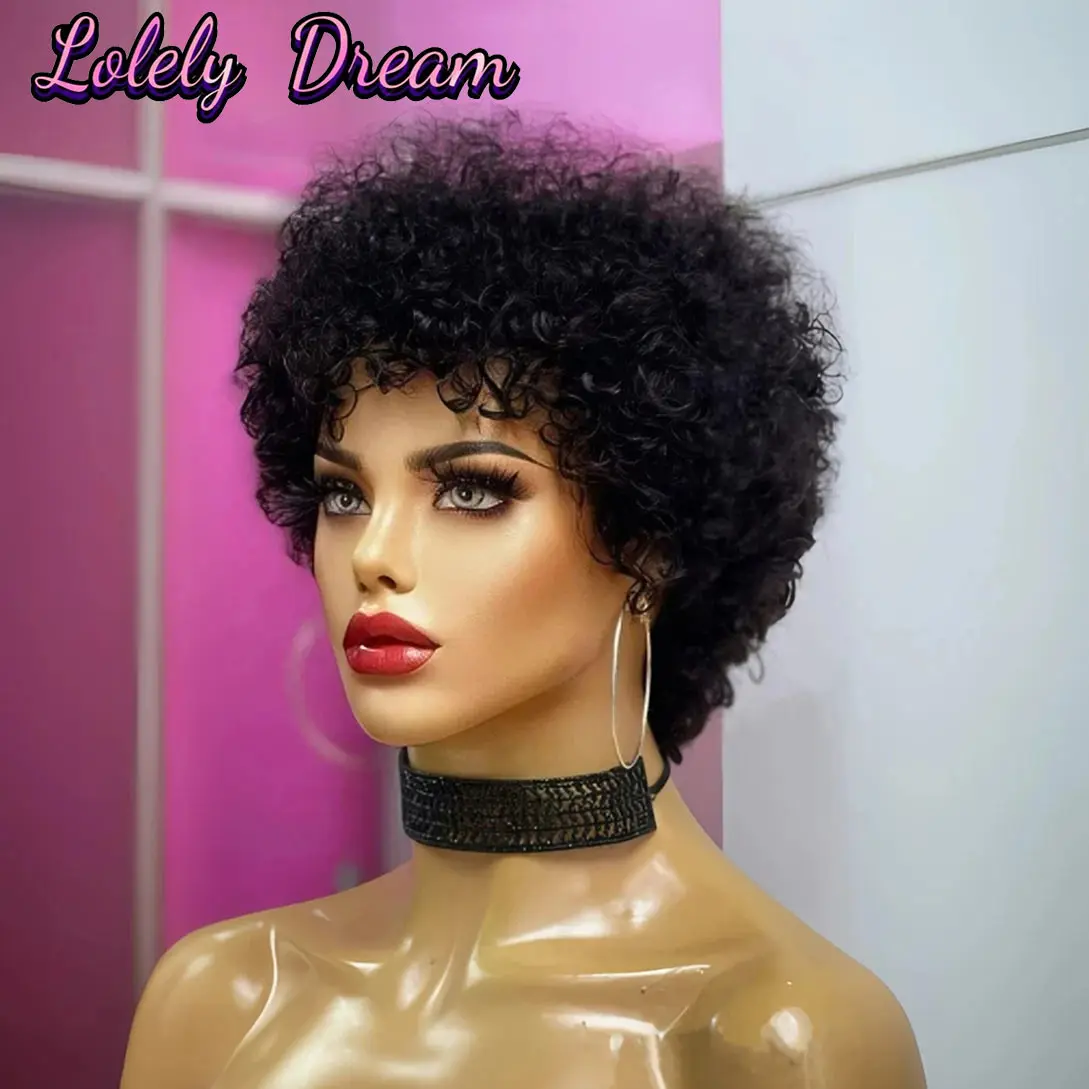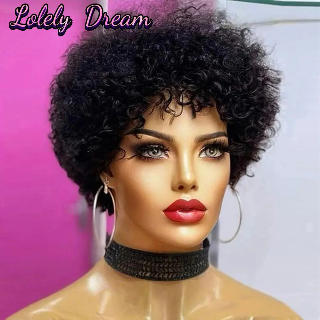 Curly human hair Wig Large Bouncy Afro Kinky Curly Wigs For Black Women Machine made Wig Brazilian Virgin Remy Human Hair Wigs