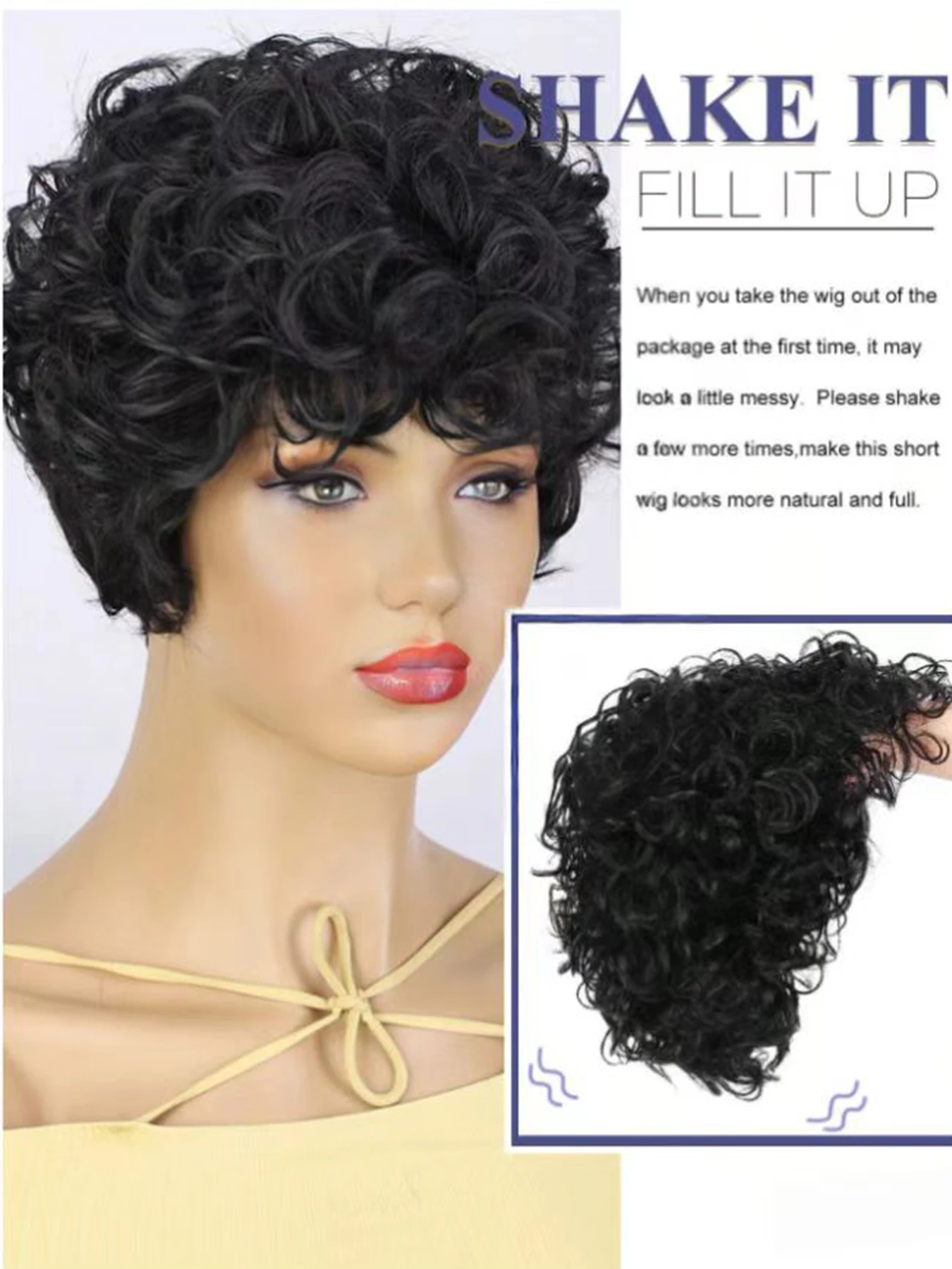 Be the first to review “Cut Short Curly Wigs for Women, Synthetic Full Wigs with Bangs, Glueless Daily Wear And Go, Black Color, Heat Resistant, Beginne”