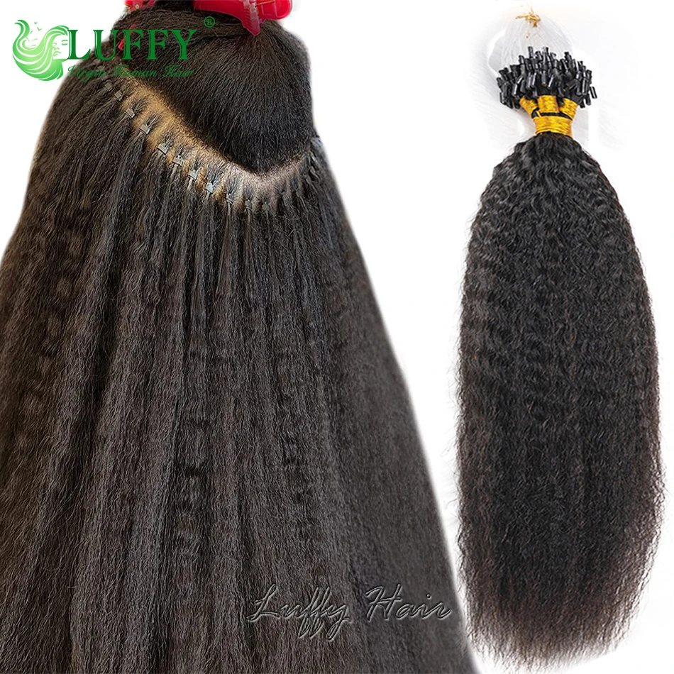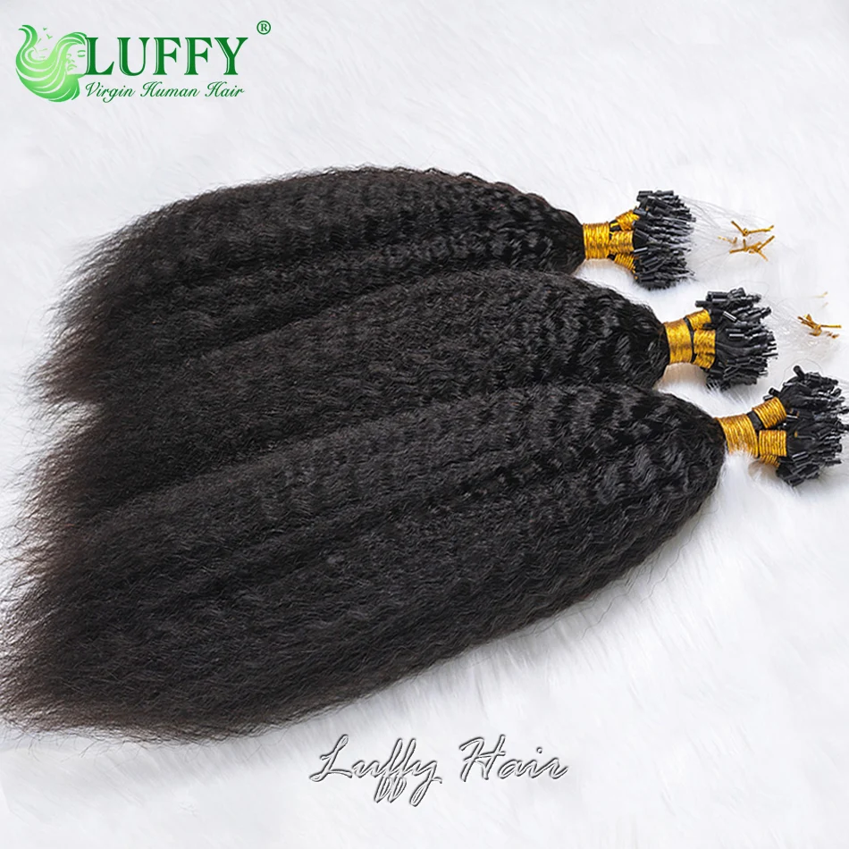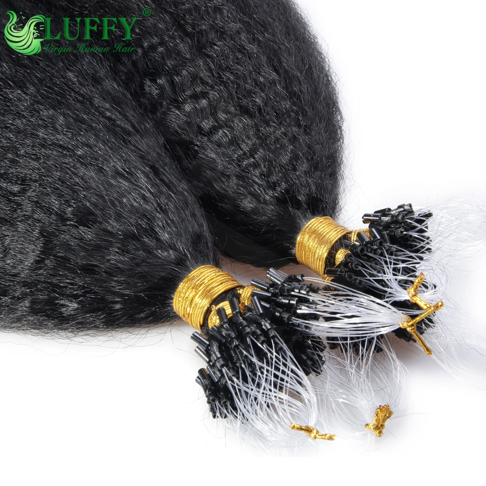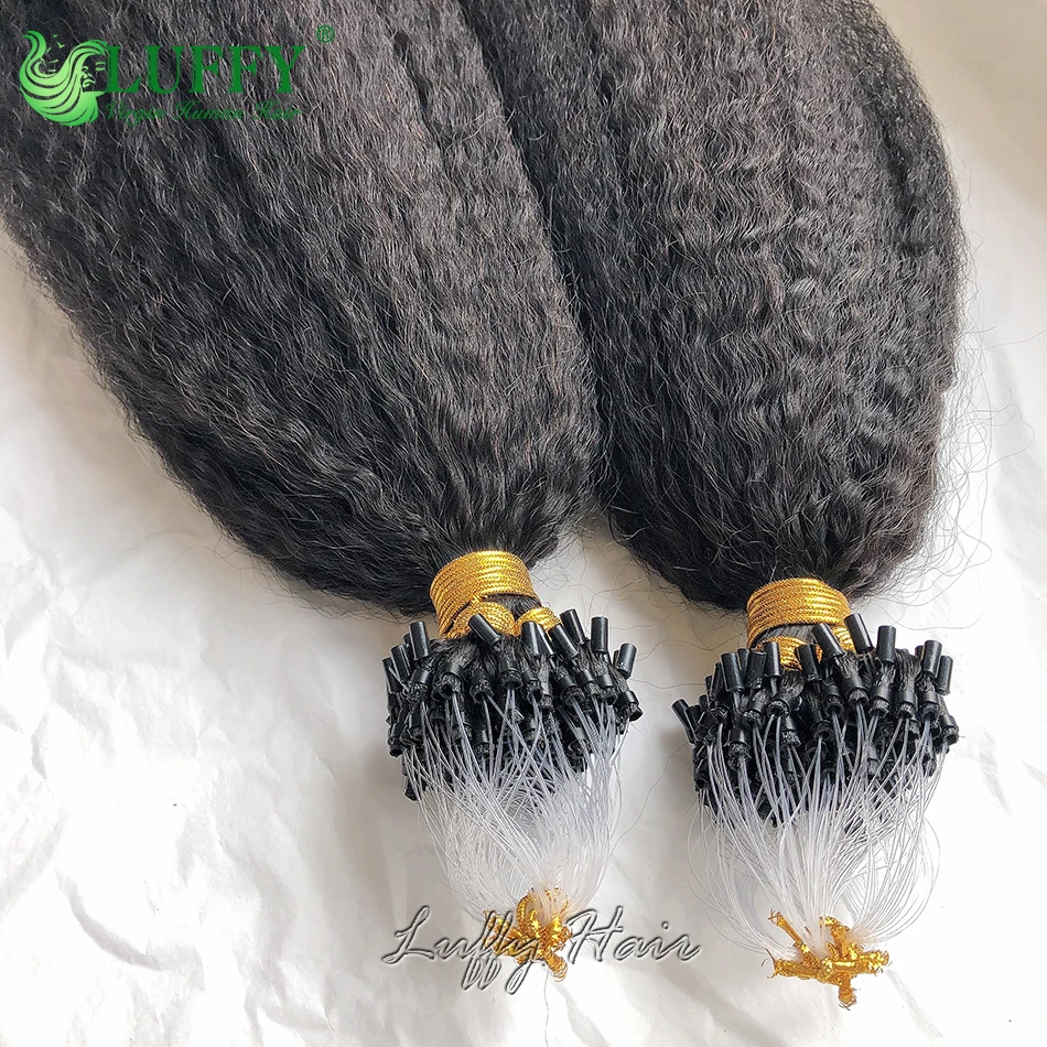 Kinky Straight Micro Loop Hair Extensions Human Hair Burmese Microlink Hair Extensions For Black Women Micro Ring Loop Hair Extensions 10-26Inches