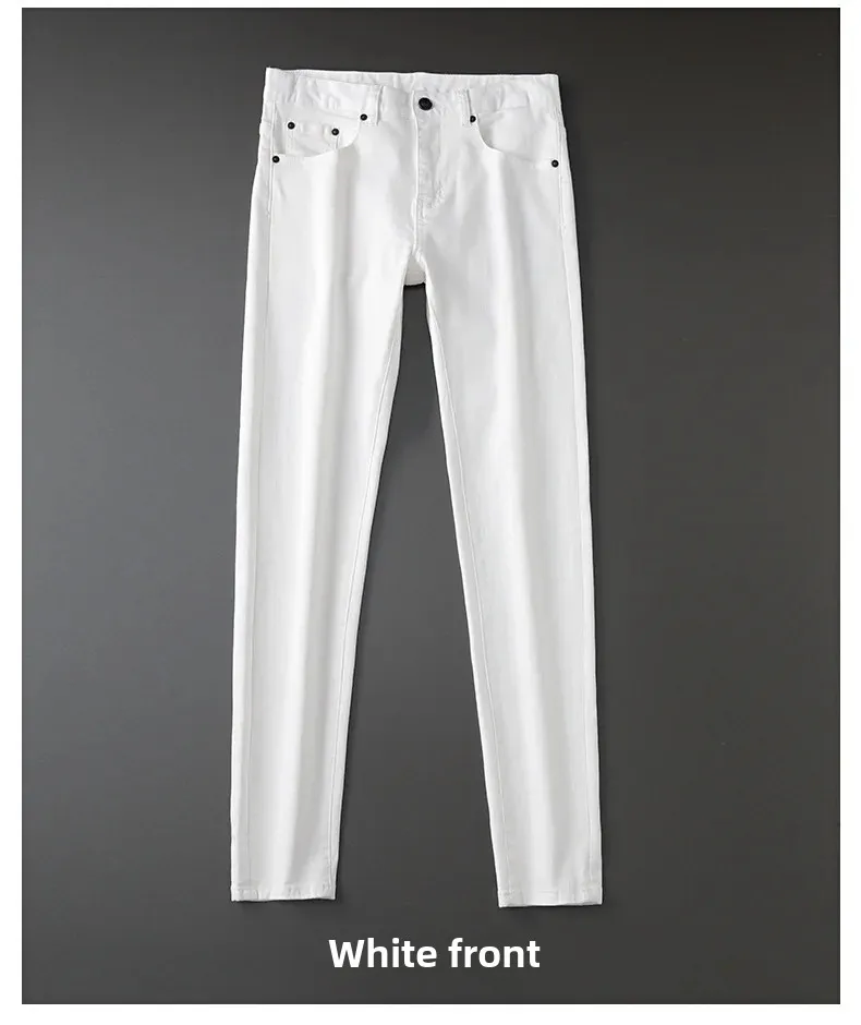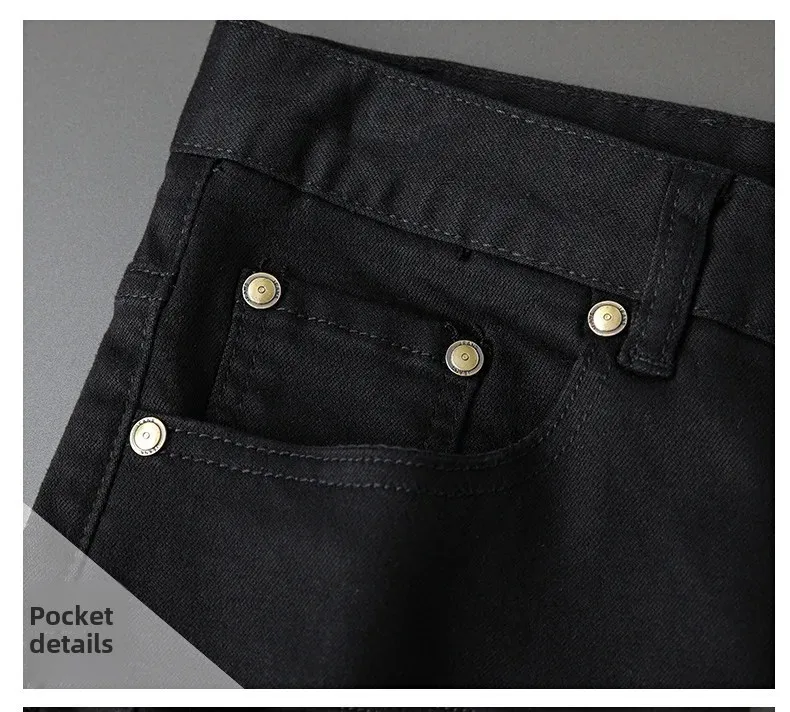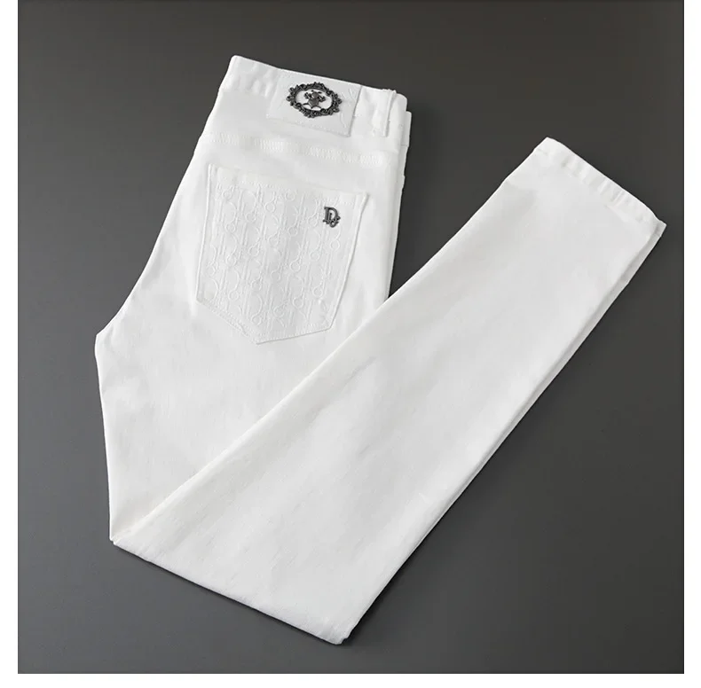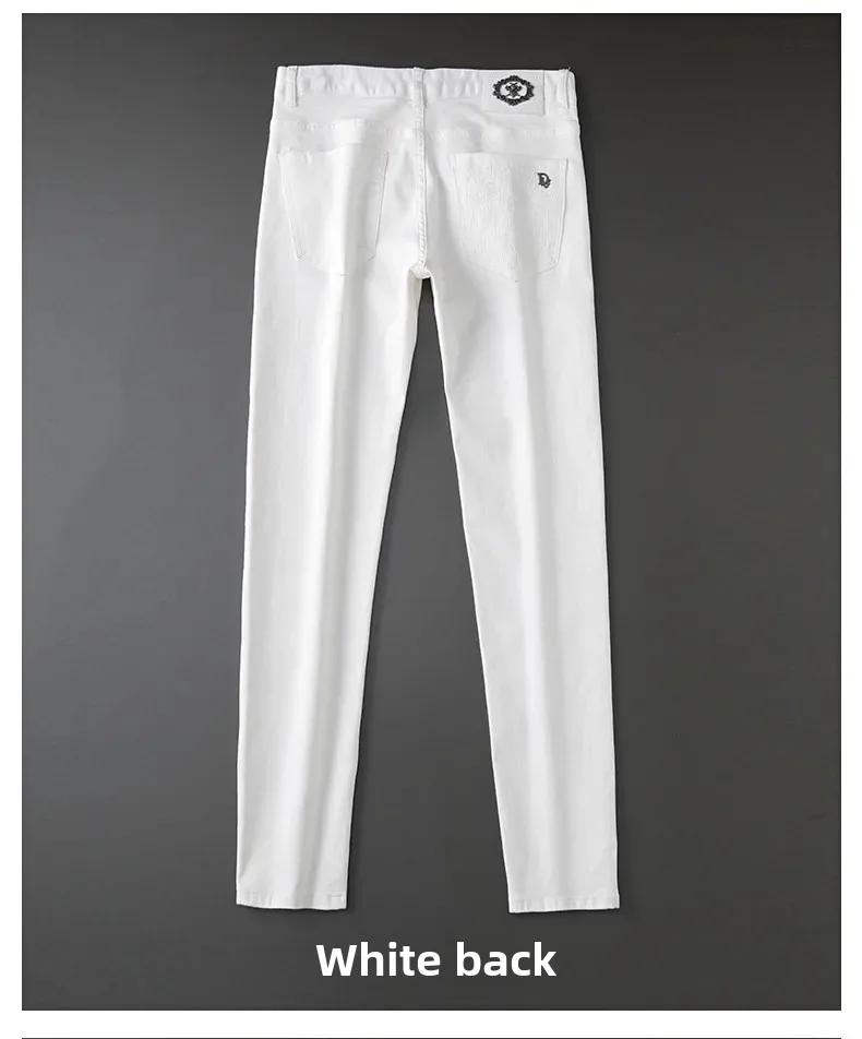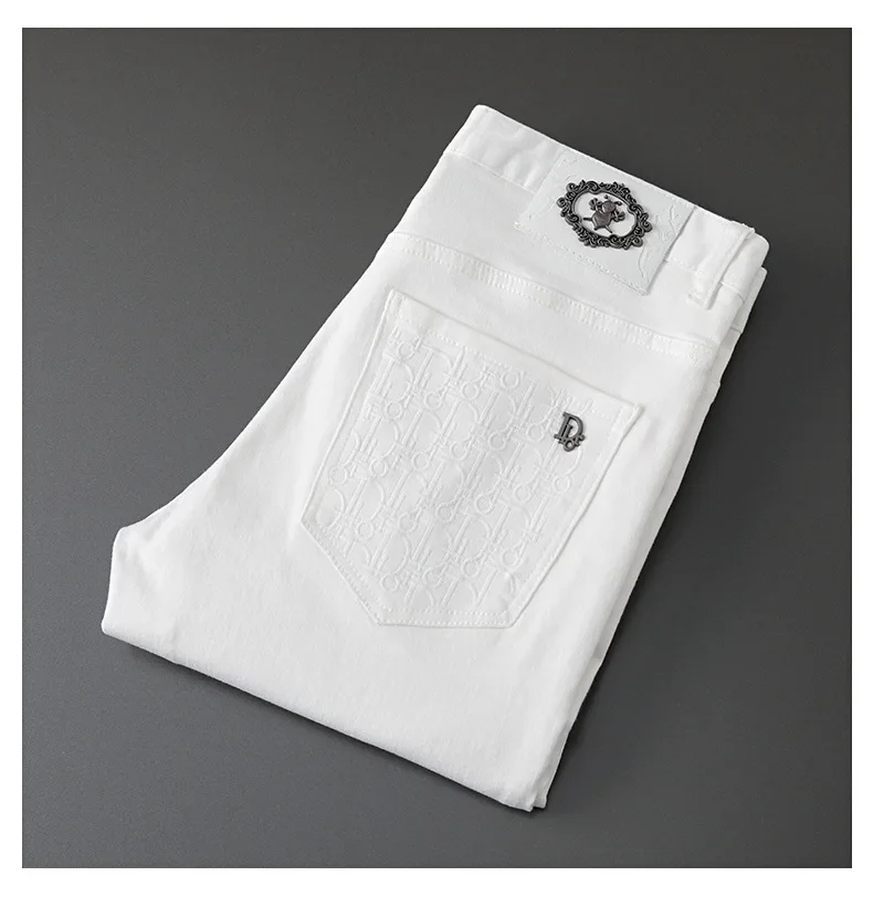 Korean Style Embroidery Black And White Jeans Men’s Trendy Brand Elastic Slim Fit Casual Luxury Trousers For Young Men