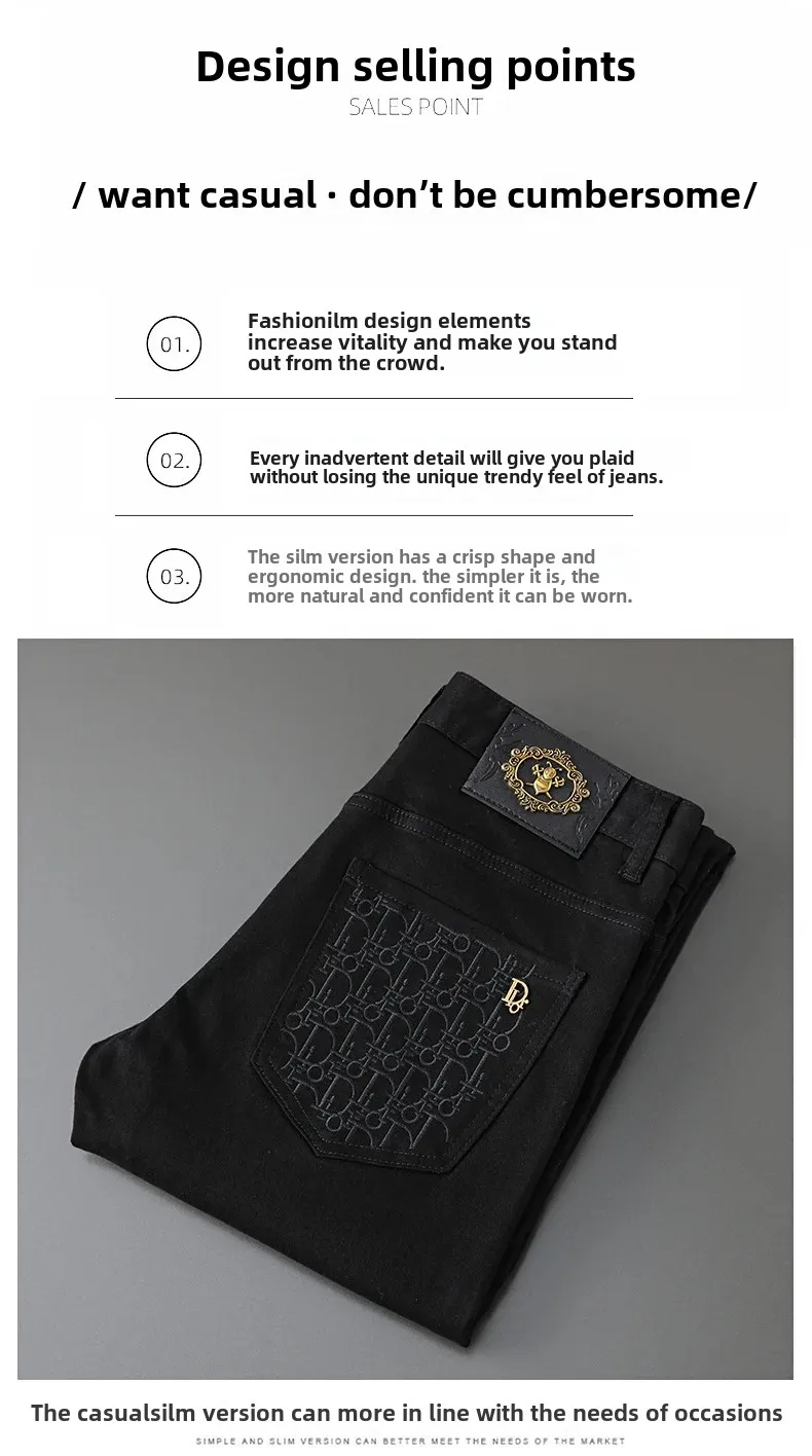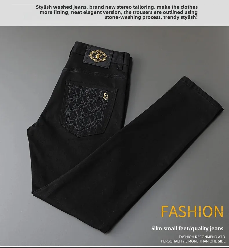 Be the first to review “Korean Style Embroidery Black And White Jeans Men’s Trendy Brand Elastic Slim Fit Casual Luxury Trousers For Young Men”
