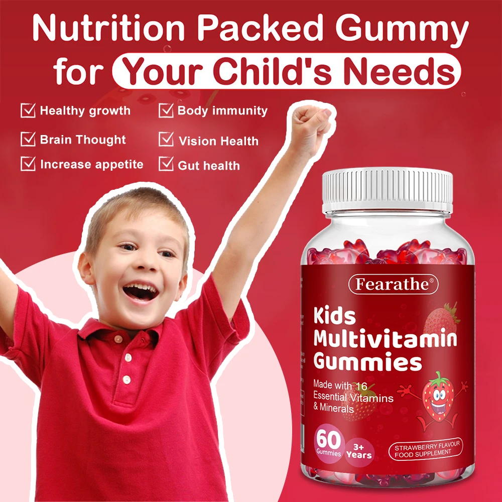 DELICIOUS AND NUTRITIOUS: A strawberry flavored nutritional supplement that kids will love! Our multivitamin gummies are a delicious and convenient nutritional supplement for children. It helps ensure that children get the nutrients and essential vitamins they need for optimal growth and development every day in a delicious way.