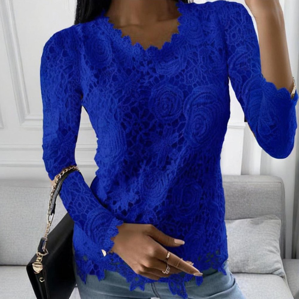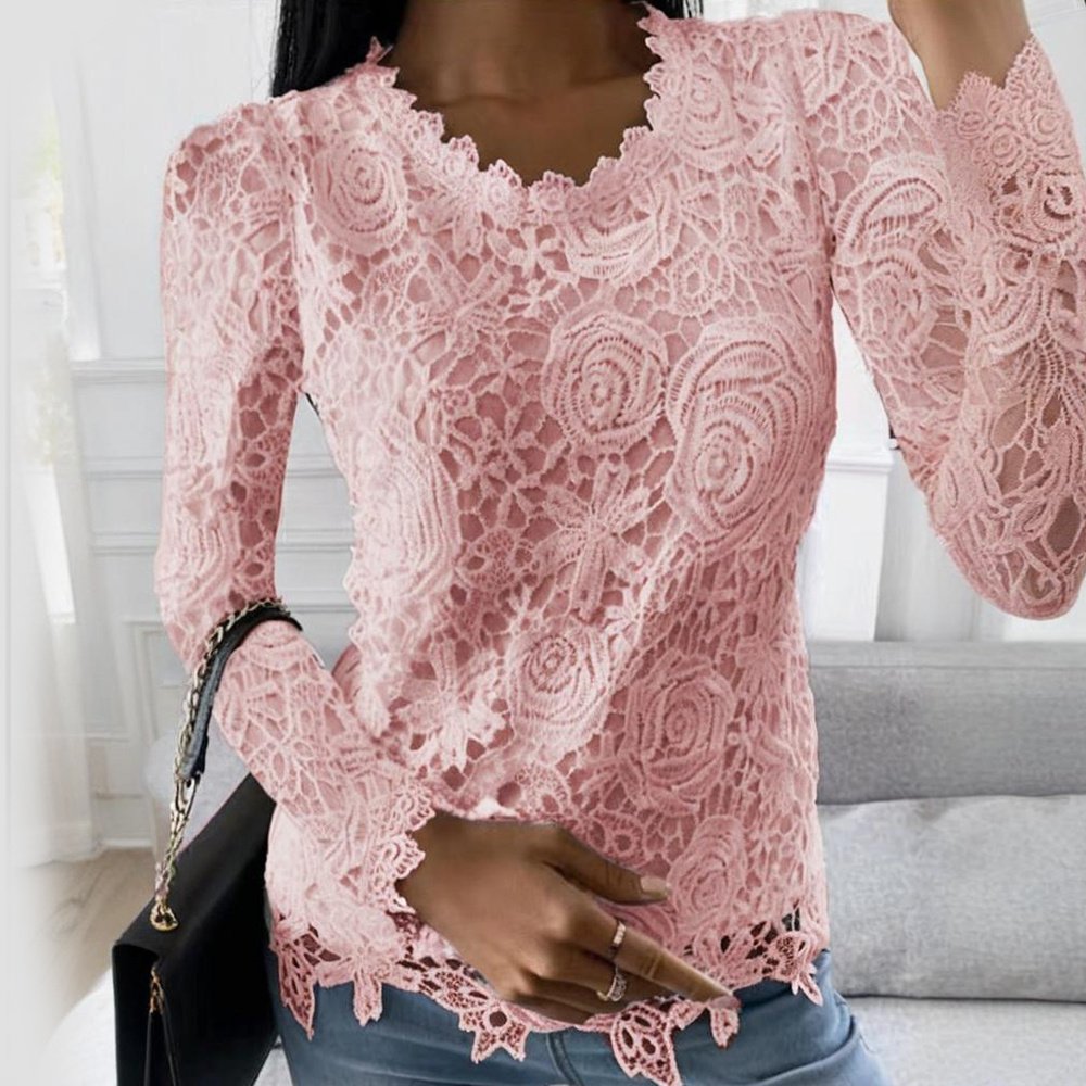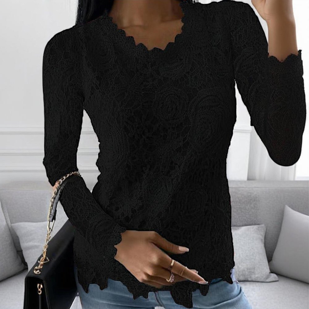 Discover our stunning  plus size lace long sleeve tee , designed to combine comfort with sophisticated style. Featuring  delicate floral cutout patterns  and a  classic round neck , this top is perfect for creating effortlessly chic vacation looks or elevating your everyday wardrobe.