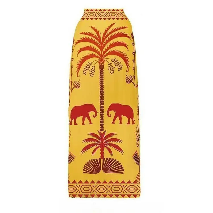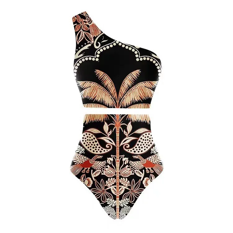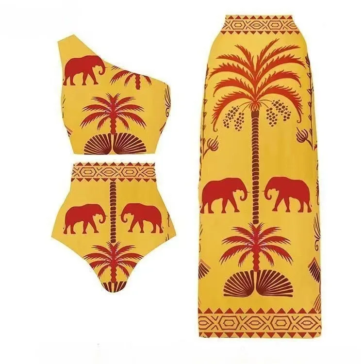 Printed One Piece Swimsuit Women Bikini with Beach Set New One Shoulder High Waist Split Swimwear Brazilian Biquini Bathing Suit