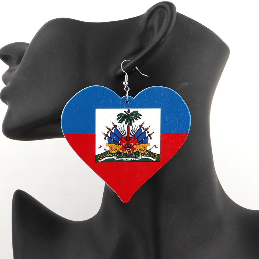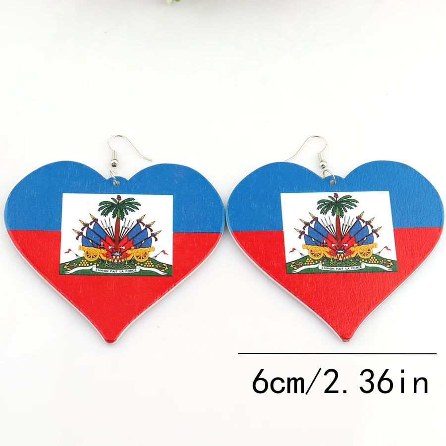- shape: Printing Haiti Flag Heart Wooden earrings