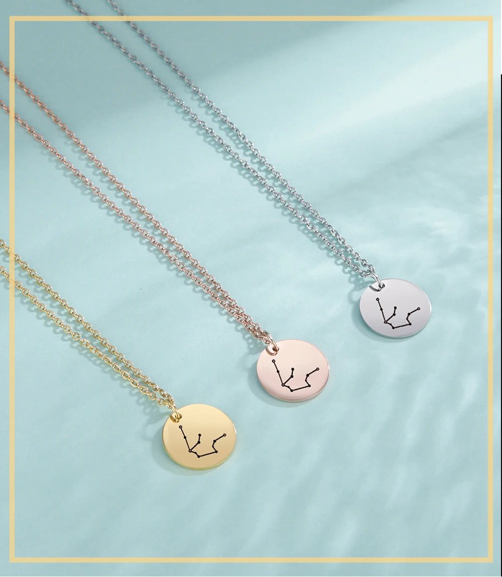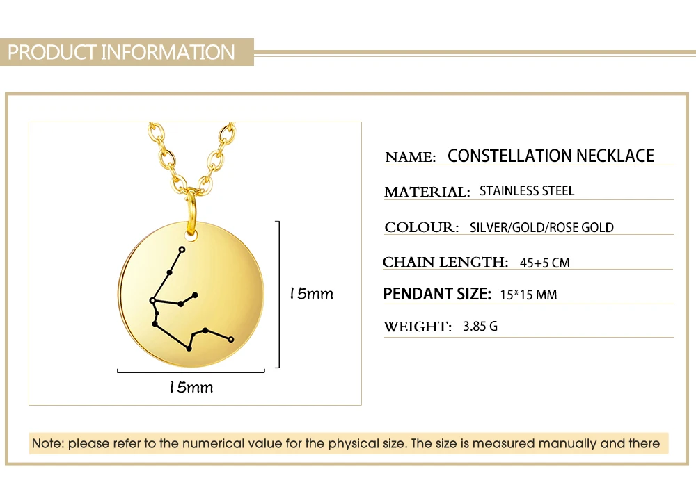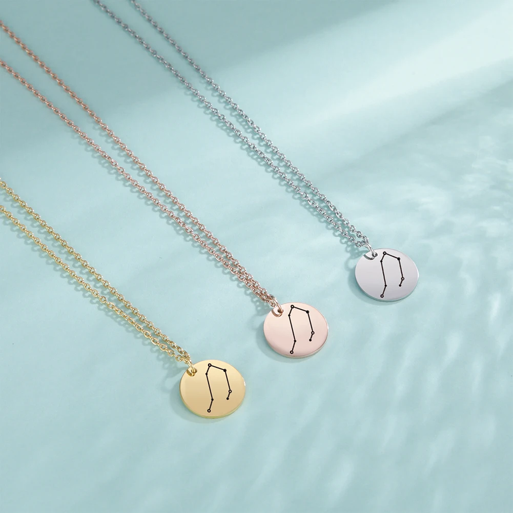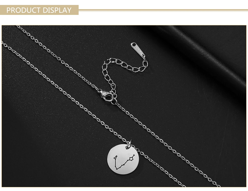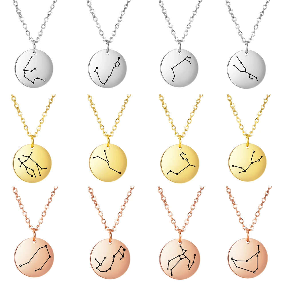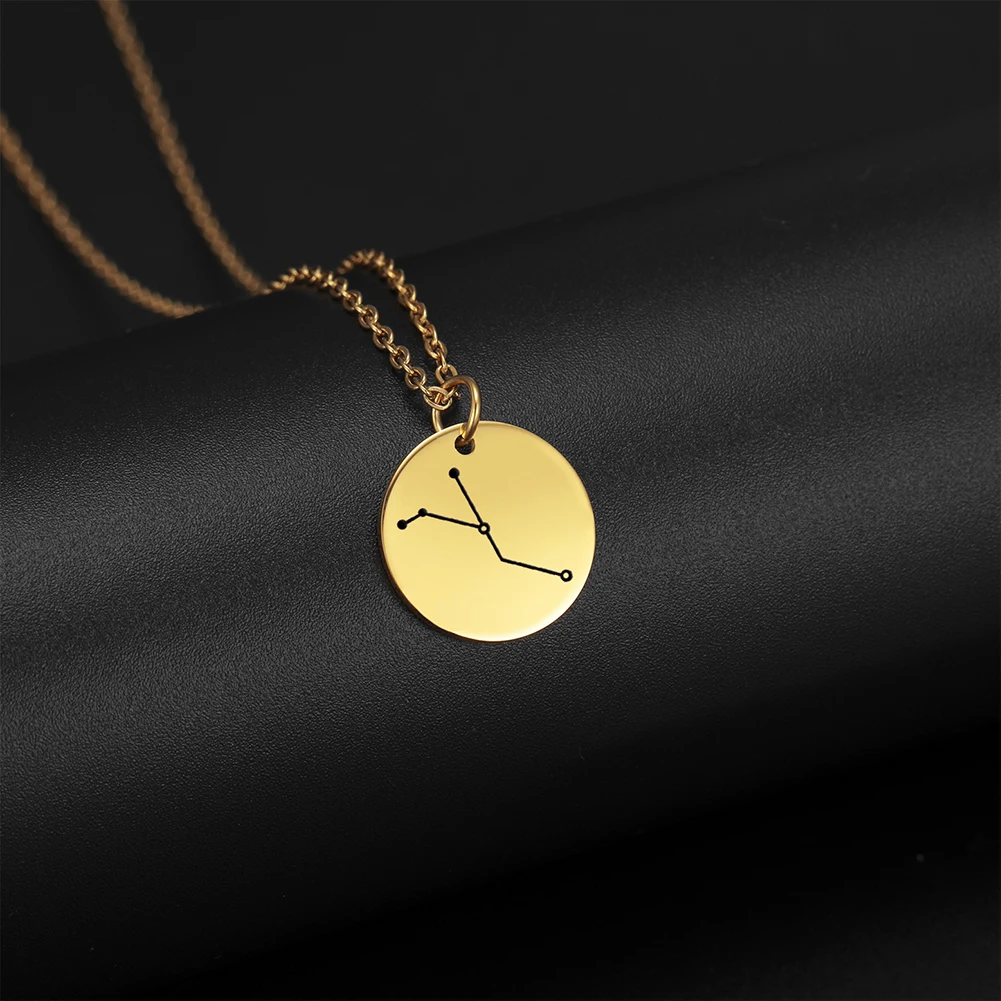 Skyrim Twelve Zodiac Necklace Women’s Twelve Constellations Skyline Stainless Steel Leo Gemini Taurus Aries Libra Virgo Pendant
