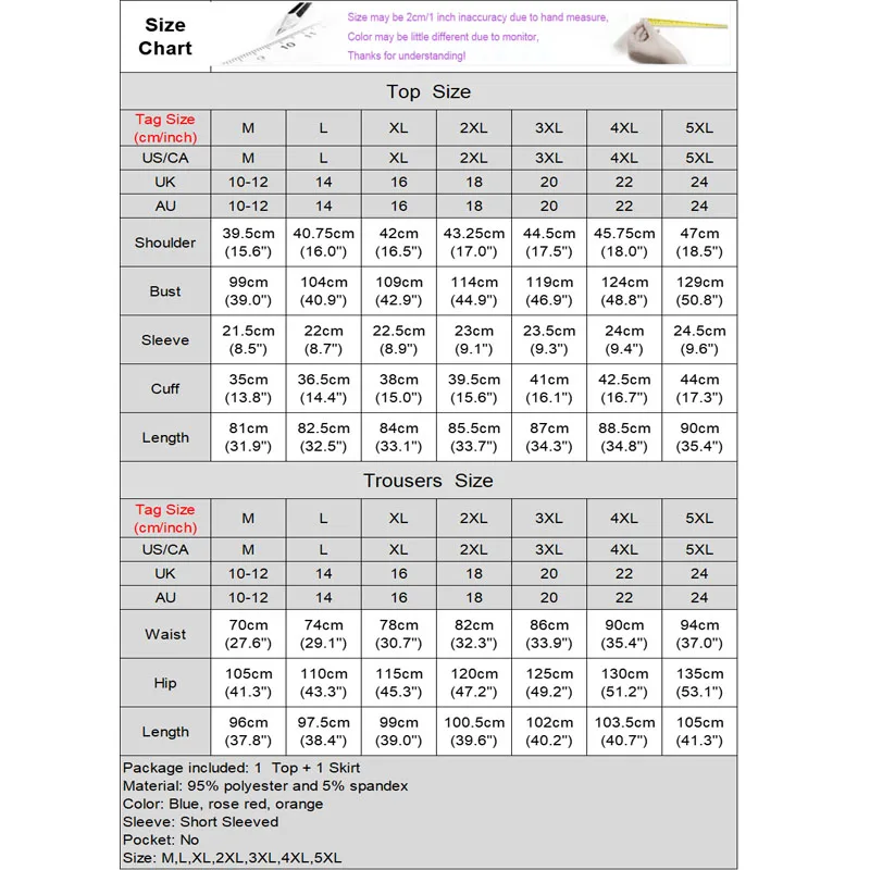 Package included: 1 Top + 1 Skirt