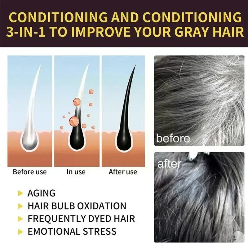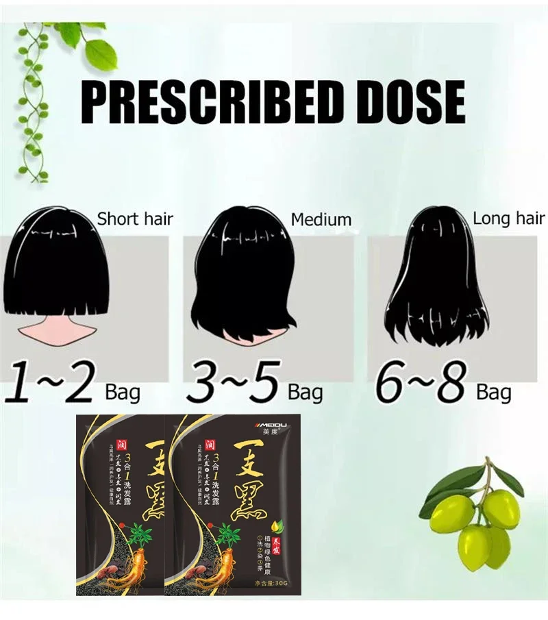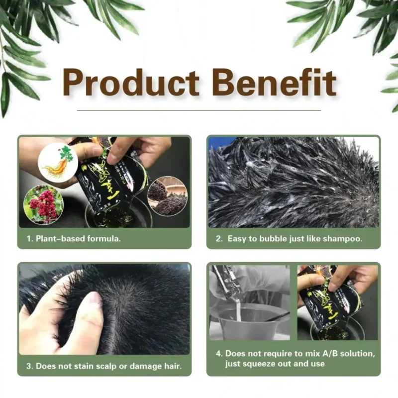 - Efficacy: Gently turn white hair black. Restore natural hair color