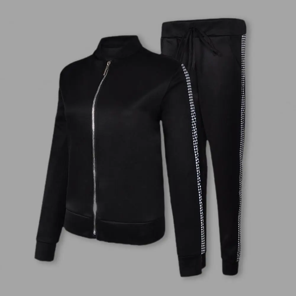 Elevate your casual wardrobe with this stylish Spring and Autumn Women’s Zipper Casual Vibrant Sports Fashion Suit. Perfect for everyday wear, this suit features a slim silhouette with long sleeves and printed dots on the sleeves and sides of the trousers.