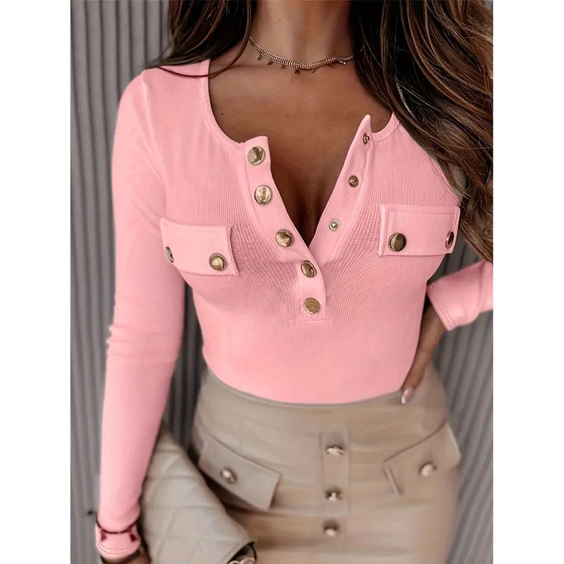 Upgrade your wardrobe with this stylish Long Sleeve Ribbed Knit Tunic ! Featuring a flattering scoop neck and slim-fit silhouette , this button-up blouse is perfect for both casual and dressy occasions. The stretchy ribbed fabric hugs your curves comfortably while the tunic length provides effortless elegance.